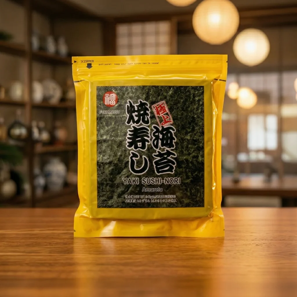 Fukumatsu: Algas marinhas selecionadas para Sushi Nori, com leveza, consistência e precisão no preparo.